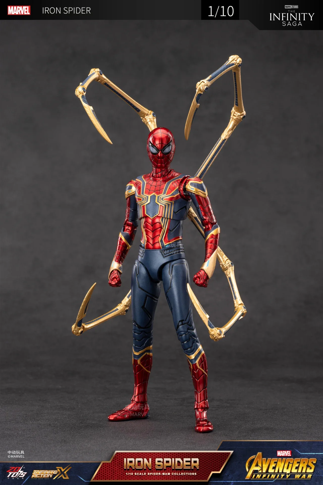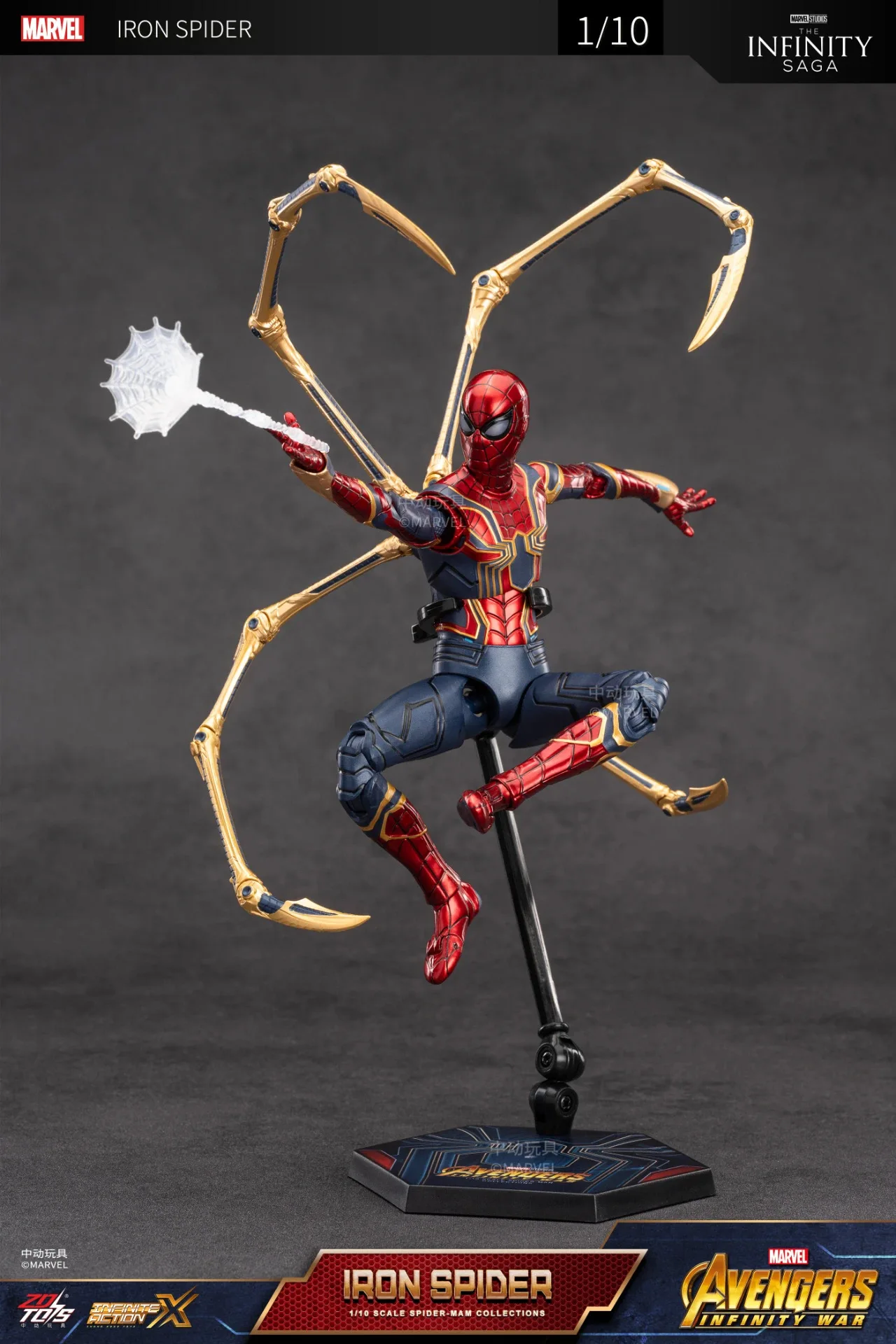 1/10 ZD Original 18cm The Avengers Marvel Spider-Man Iron Spider Peter Parker Collection Anime Doll Action Figure Model Kids Toy
