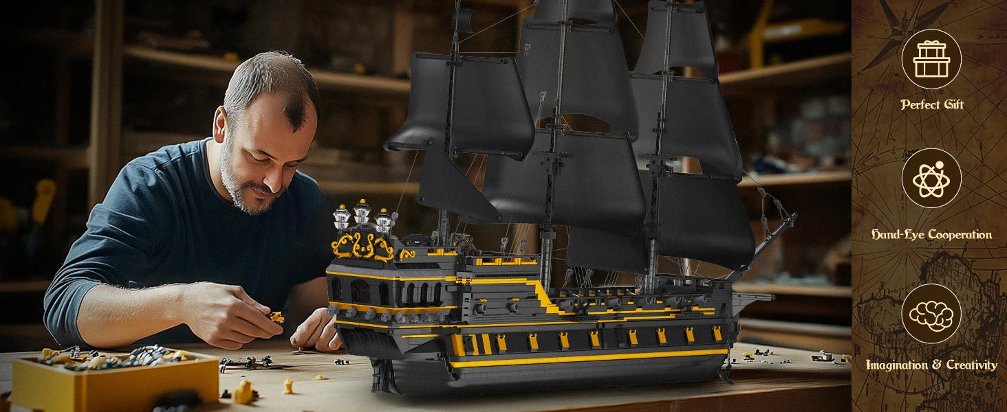 This detailed 5266-piece Pirates Ship model building set replicates the iconic Black Pearl sailboat, offering an authentic construction experience for enthusiasts. Designed for collectors and advanced builders, it features intricate components that enhance realism and complexity. Ideal for display or as a challenging project, this kit combines creativity with precision, allowing you to bring a legendary pirate ship to life through meticulous assembly.
