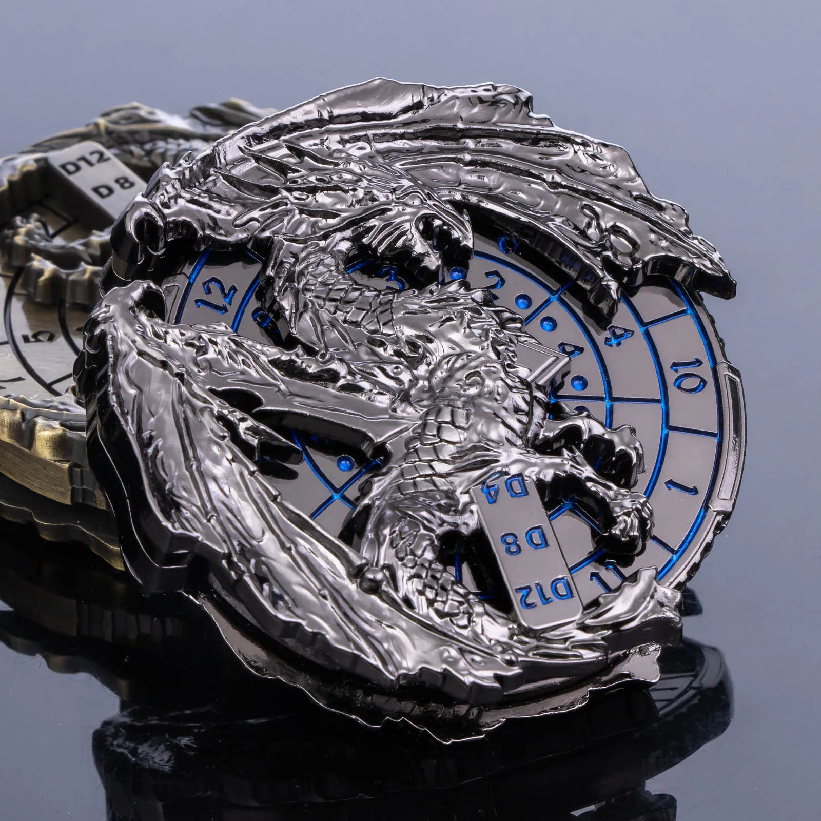 DND 7-in-1 Fingertip Dragon Pattern Wheel Metal Dice RPG Role Playing Dragon and Dungeon Board Game