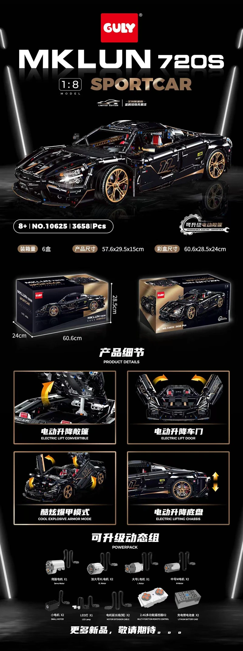 IN STOCK 1:8 MOC Sport Racing CAR Model 720S With Motor 10625 3658Pcs Building Blocks Bricks Toys For Children Christmas Gifts