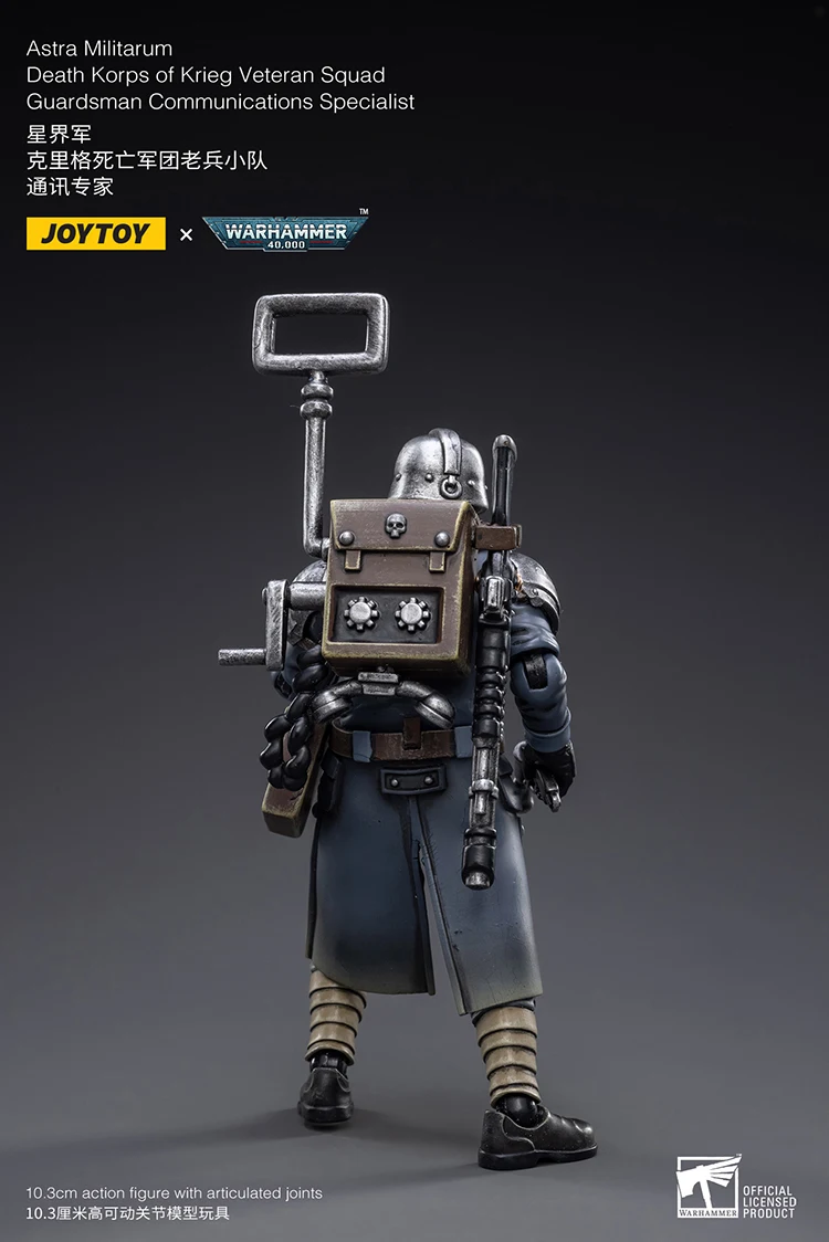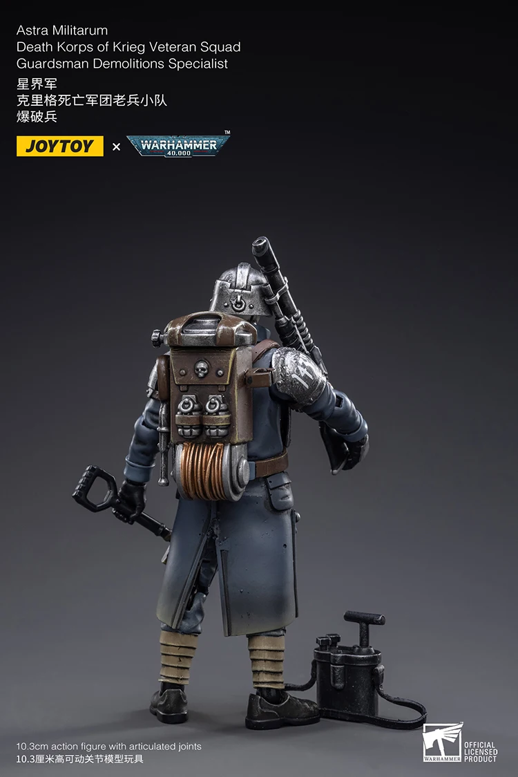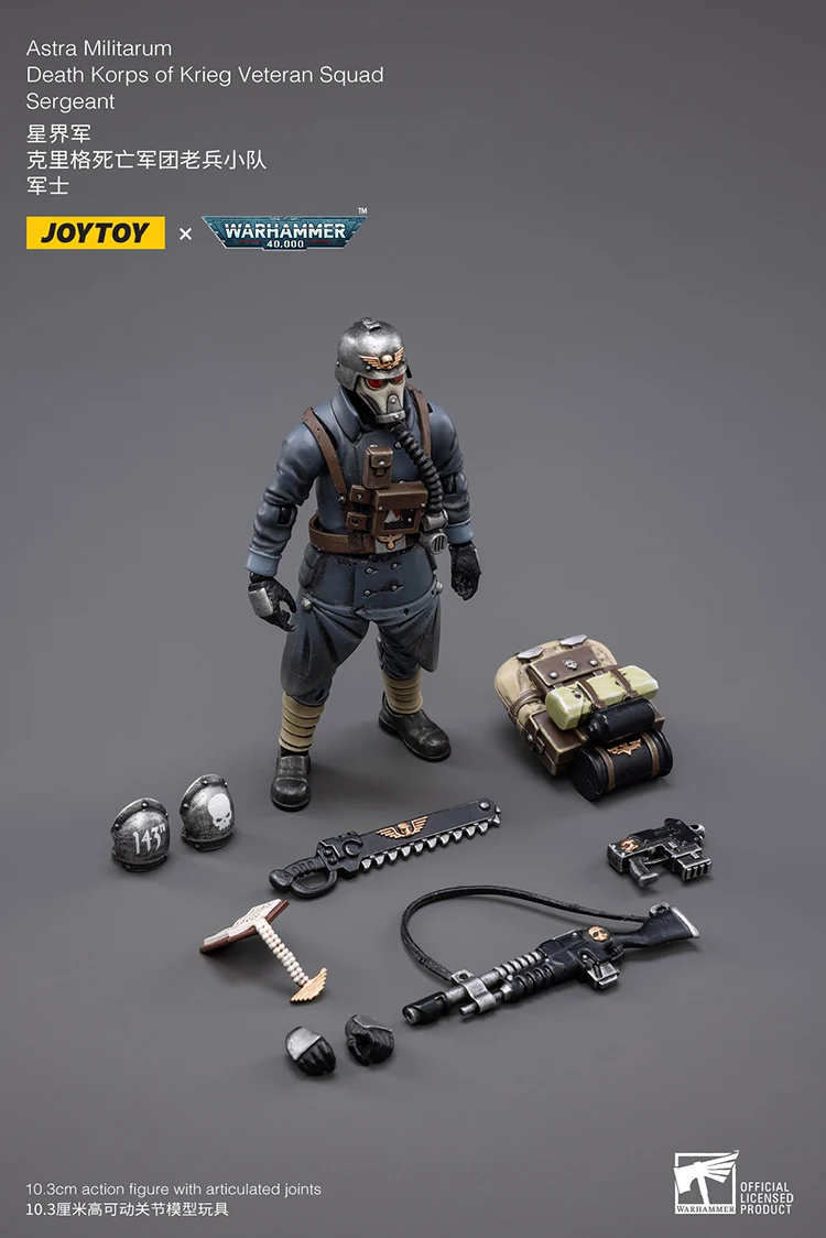 The JOYTOY Warhammer 40k 1/18 scale action figures feature the Astra Militarum Death Korps of Krieg Veteran Squad, meticulously crafted for collectors and enthusiasts. Each figure showcases detailed armor and weaponry true to the Warhammer 40k universe, capturing the grim determination of these elite soldiers. Perfect for display or diorama creation, this set offers authentic representation and high poseability, enhancing your Warhammer collection with expert-level craftsmanship.