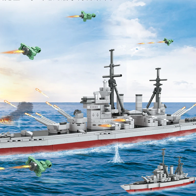 Military Series King Level Classic Warship Building Blocks South Kadota Battleship bricks WW2 Soldier Weapon Toys for kids gift