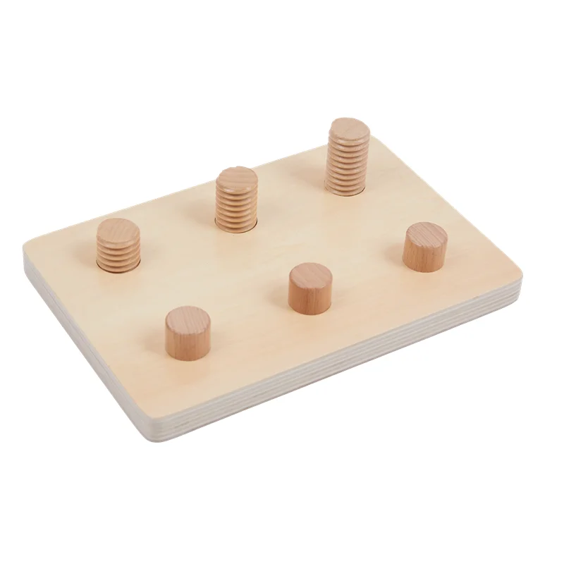 This Montessori educational toy features a nuts and bolts board designed to enhance toddlers' fine motor skills through engaging screwing activities. It supports the development of hand-eye coordination, dexterity, and basic problem-solving abilities, making it an effective learning tool for early childhood skill-building. Crafted to encourage focused play, this material fosters foundational skills essential for young learners.