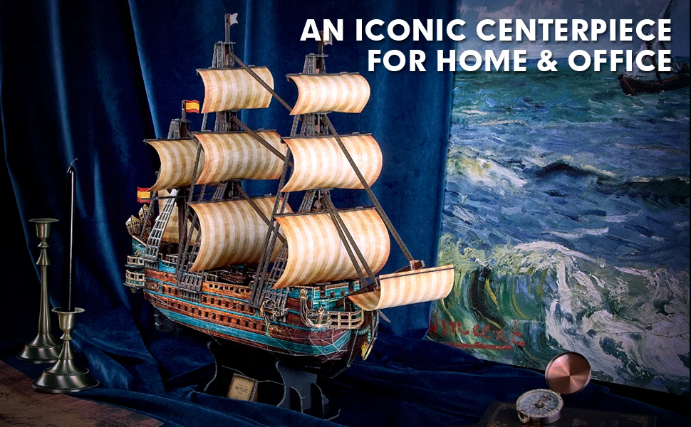 The San Felipe Model Ship Kit is a detailed 3D puzzle measuring 25.6 inches, designed for adults and teens seeking a challenging and rewarding hobby. This kit offers an engaging way to relieve stress while assembling a historically accurate ship model. Ideal as a sophisticated decoration or a thoughtful birthday gift for men, it combines craftsmanship with relaxation, making it a perfect addition to any collection or workspace.