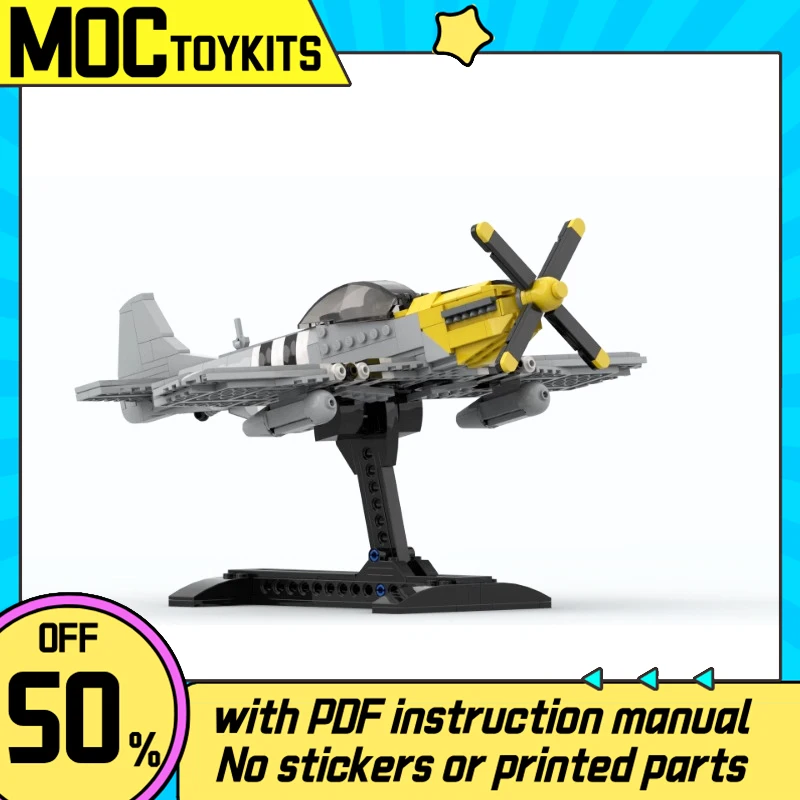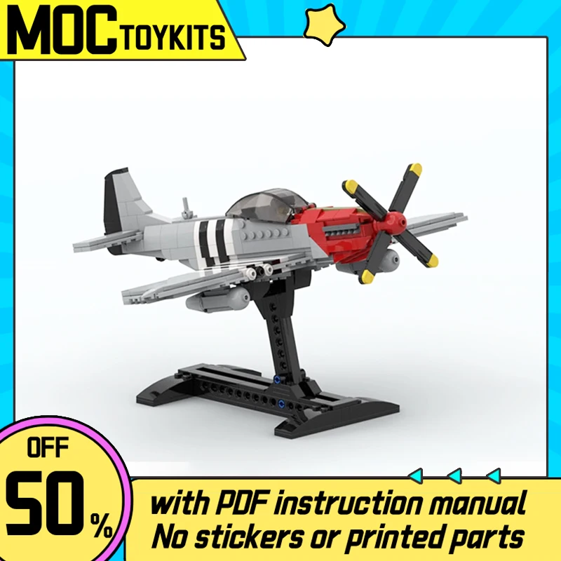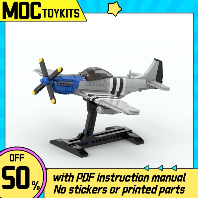 WW2 Military Aircraft MOC-154389 Mustang P-51 Fighter Model DIY Assembly Puzzle Block Toy Set for Boys Gift